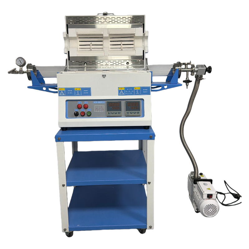 Ø炉体结构:配有一对不锈钢密封法兰,采用硅胶密封圈密封;石英管口径可选:φ25;φ50 ;φ60;φ80; φ100,石英管的设备设有法兰支架;真空度:10-2torr(采用机械泵)安装有一机械压力表,测量范围为-0.1~0.15MP 。