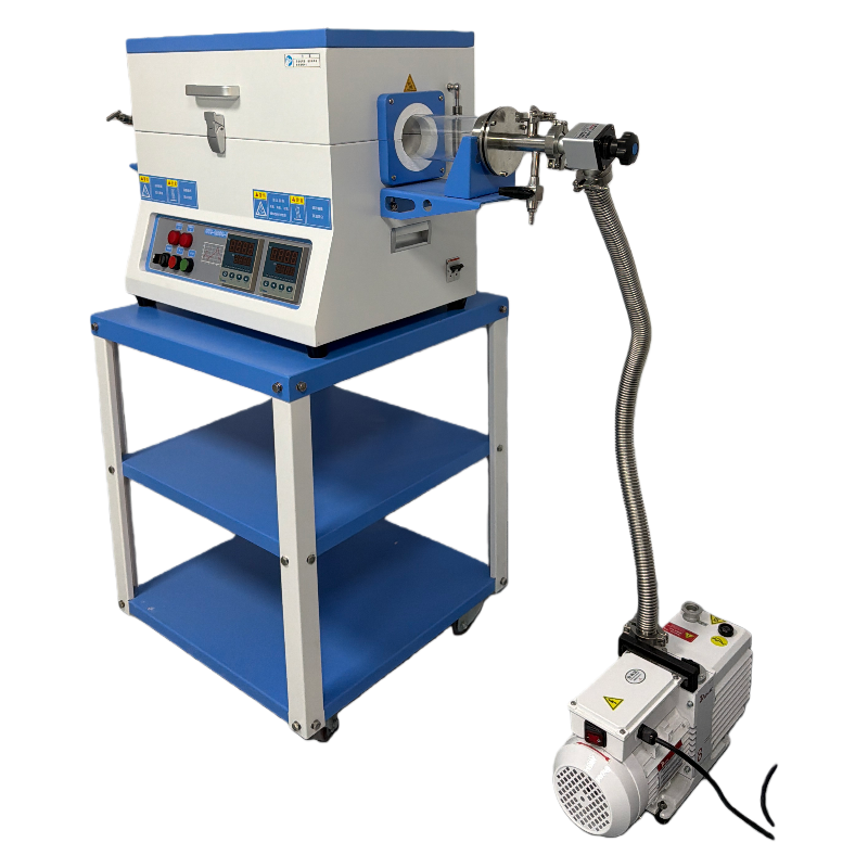 采用双旋片式机械真空泵真空度可以达到10-2torr;如您想获得更高的真空度(<10-5torr or better)可选国产或进口高真空机组。