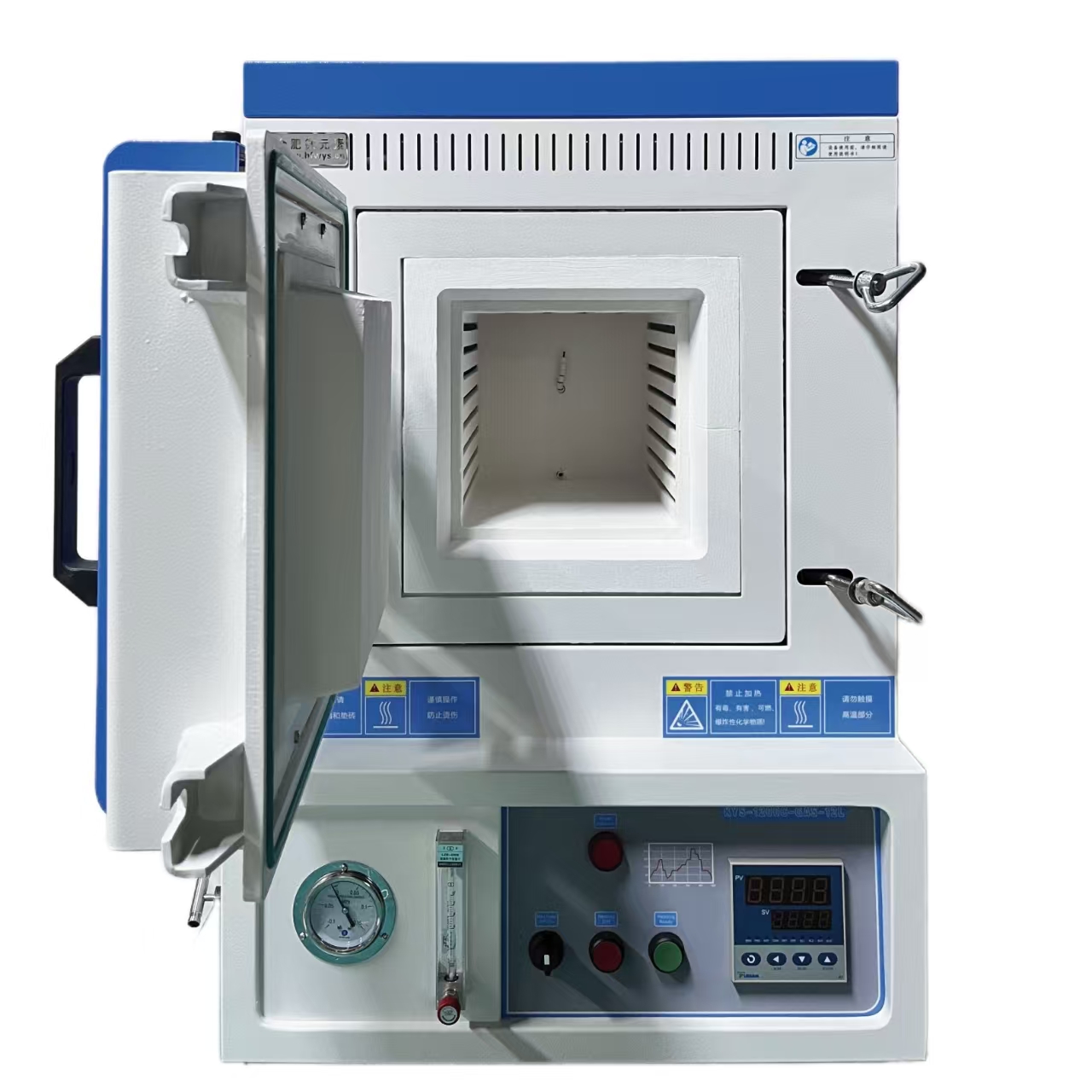 Ø注意事项:炉膛内气压不得高于0.02MPA;由于气瓶内部气压较高,所以向炉膛内通入气体时,气瓶上必须安装减压阀,建议在本公司选购减压阀,本公司减压阀量程为 0.01MPa-0.16MPa使用时会更加精确安全。