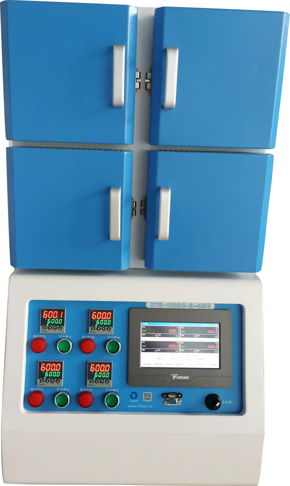 · 炉体由4个小箱式炉组成每个加热模块都由独立的温控系统控制,最高温度可达1100℃;