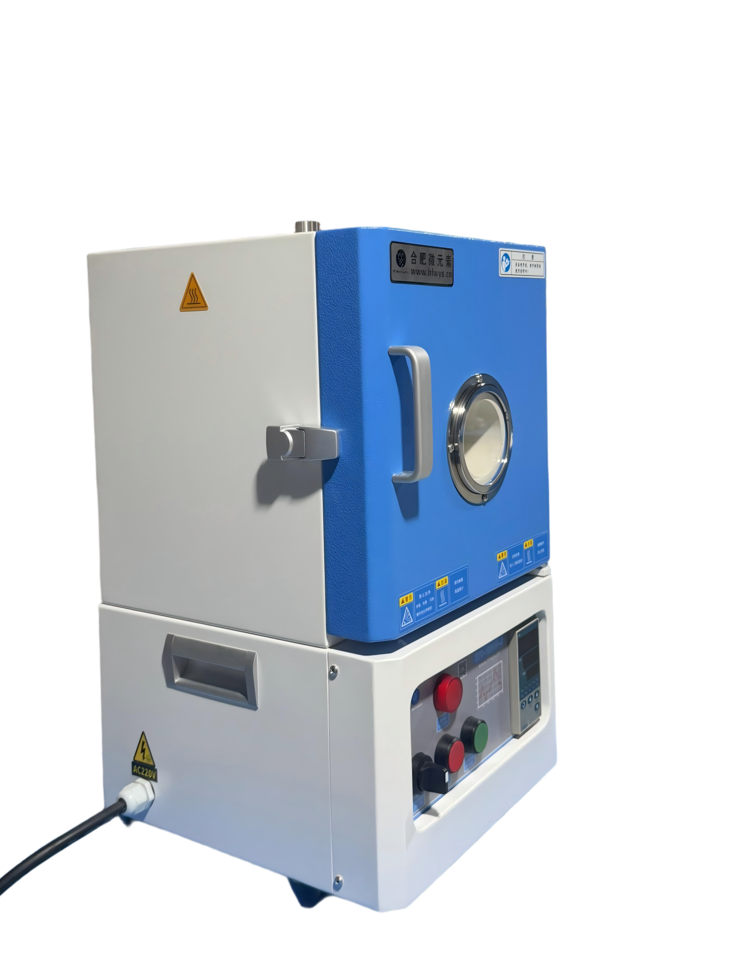 主要产品参数 | 电源:220V 50/60Hz 额定功率:2.6 KW 最高工作温度:1200℃(<0.5 h) 连续工作温度:1100 ℃ 推荐升温速率:≤10℃/min 加热区:W150mm*H150mm*D180mm;加热区空间:4L 热电偶:K型 |