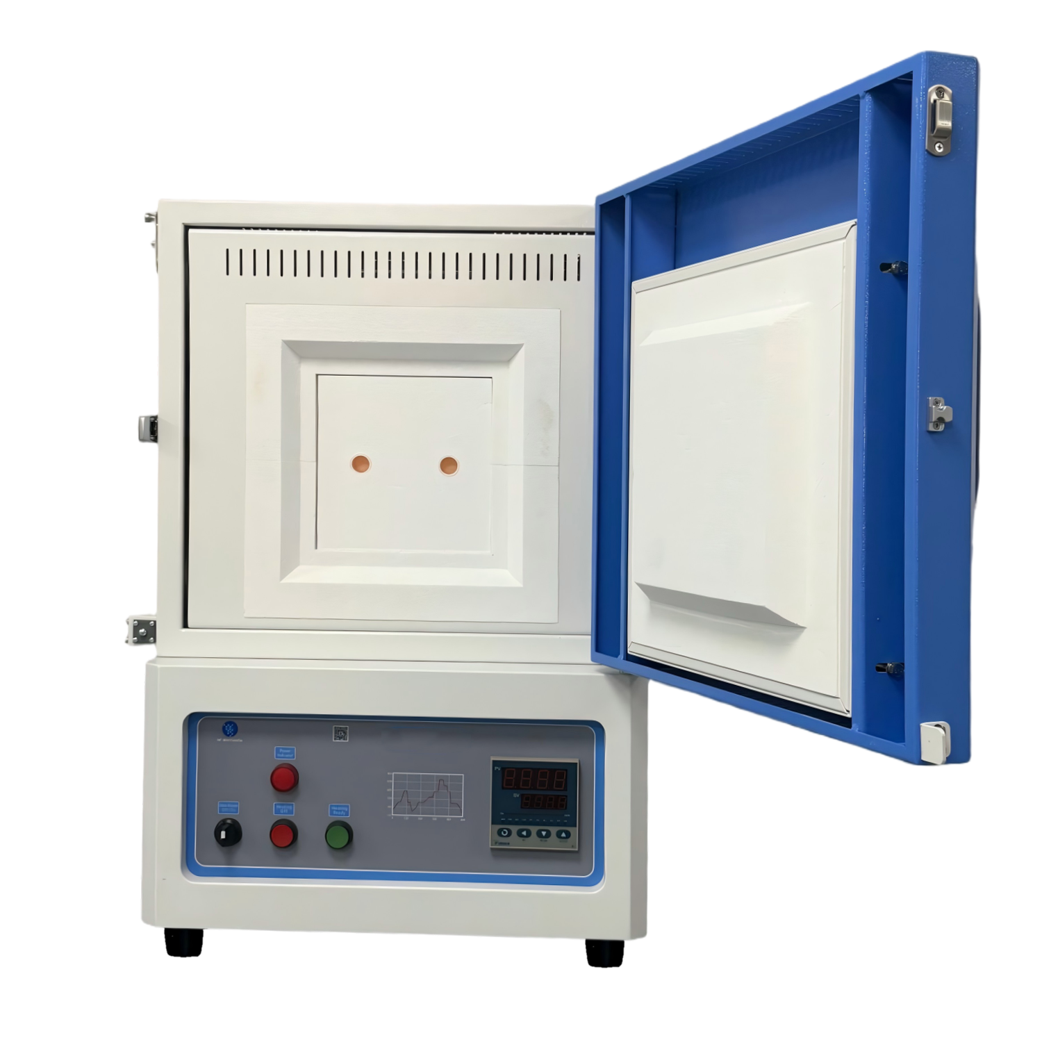 Ø炉体结构:采用双层壳体结构,并带有风冷系统;炉膛采用高纯氧化铝纤维材料,最大程度的减少能量损失;内炉膛表面涂有美国进口的高温氧化铝涂层,可以提高反射率及设备的加热效率,同时也可以延长仪器的使用寿命,带有过热和断偶保护;炉膛内两面加热,加热速率快,温场均匀;炉门配有安全限位开关,并且炉门上安装有一个保护门闩,防止意外开启及爆炸。
