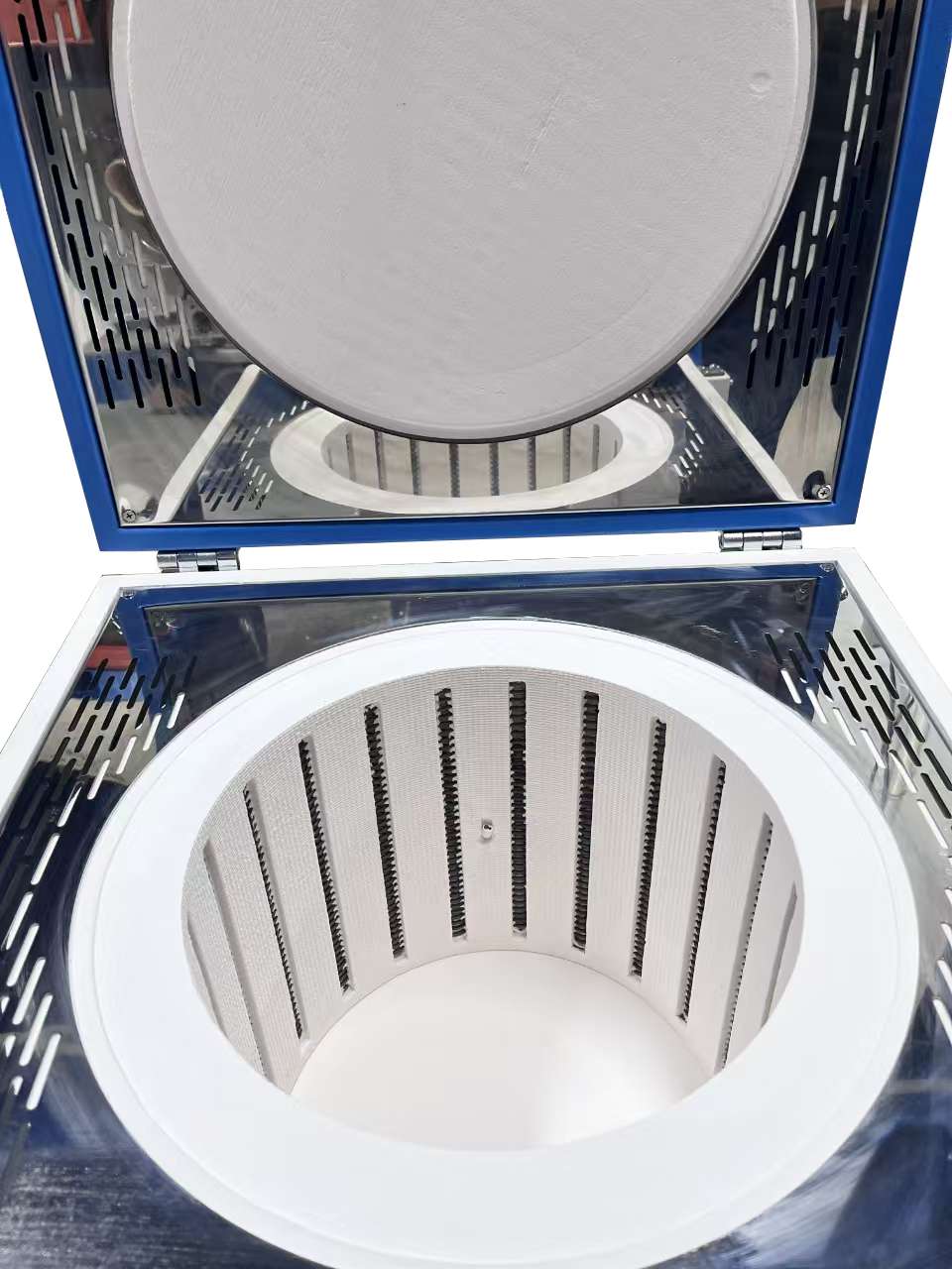 Ø炉体结构:上开门式炉门结构,方便取样;采用双层壳体结构,并带有风冷系统;炉膛采用高纯氧化铝纤维材料,最大程度的减少能量损失;内炉膛表面涂有美国进口的高温氧化铝涂层,可以提高反射率及设备的加热效率,同时也可以延长仪器的使用寿命,有过热和断偶保护,并设有开门断电功能;在炉底安装耐火砖,可以防止炉衬磨损。