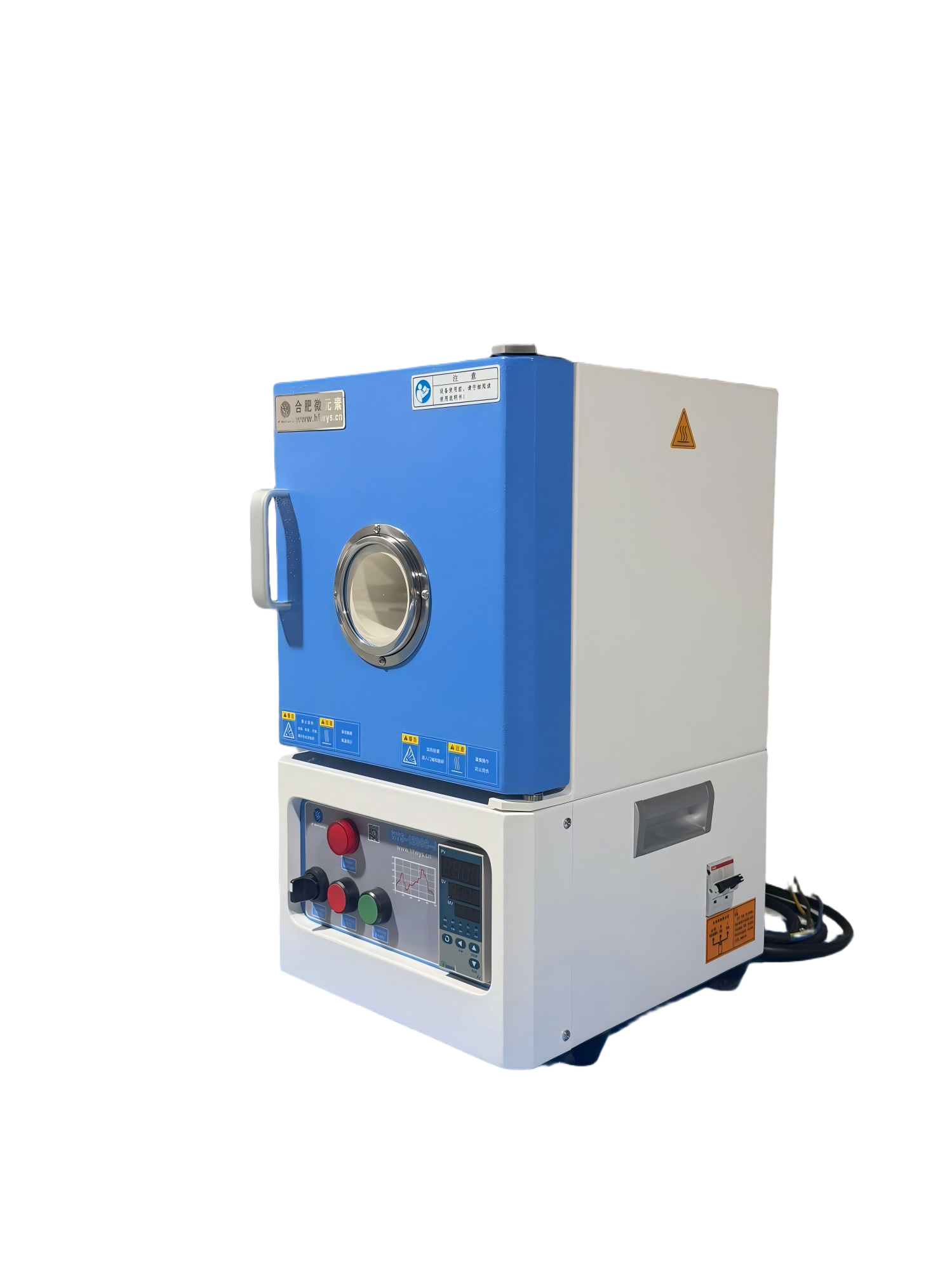 主要产品参数 | 电源:220V 50/60Hz 额定功率:2.6 KW 最高工作温度:1200℃(<0.5 h) 连续工作温度:1100 ℃ 推荐升温速率:≤10℃/min 加热区:W150mm*H150mm*D180mm;加热区空间:4L 热电偶:K型 |