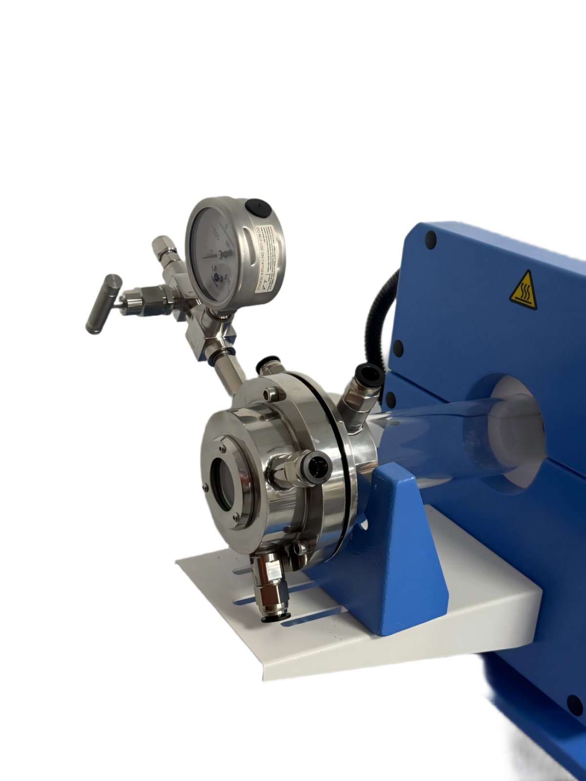 真空密封 | 一对不锈钢密真空法兰和高温硅胶密封圈;进气端使用氟化钙光学镜片观察法兰、出气端需要加装耐高温六线航插接口; |